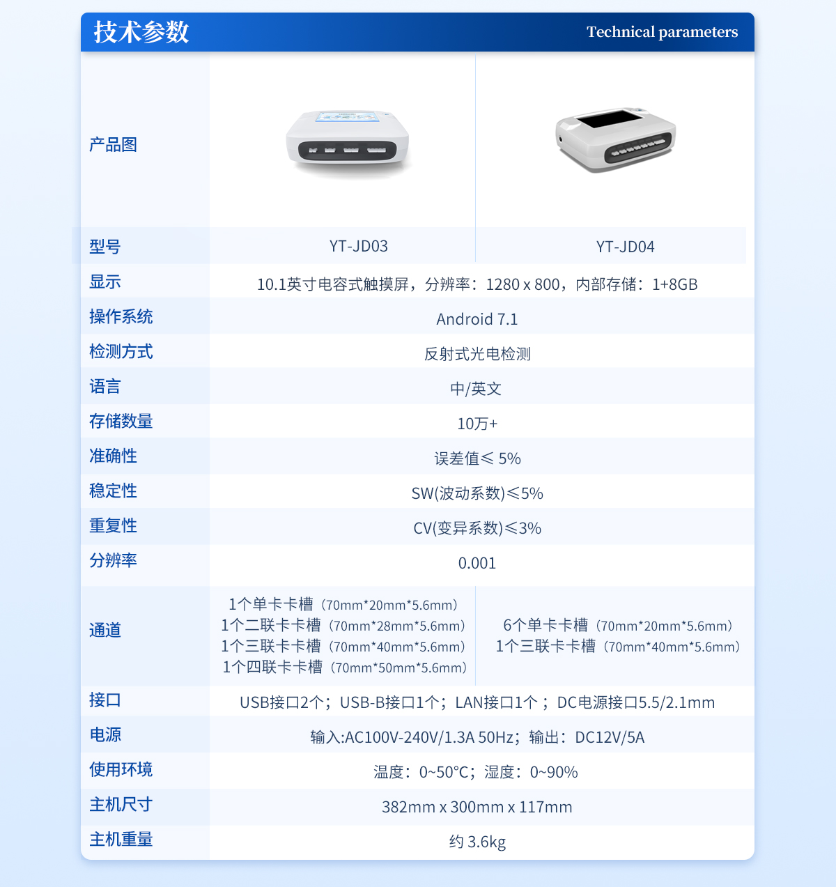 | 1、 ★Android觸控系統(tǒng)結(jié)合大尺寸高清屏幕,界面友好,操作簡(jiǎn)單流暢,無(wú)需外接設(shè)備; | 2、 ★單卡+多聯(lián)卡設(shè)計(jì)方案,顯著提升檢測(cè)效率,滿足批量樣本快速處理需求; | 3、 可以500萬(wàn)條檢測(cè)結(jié)果,支持按日期靈活查詢、預(yù)覽、刪除結(jié)果,并生成多樣化專業(yè)報(bào)告。 | 4、 內(nèi)置熱敏打印機(jī),檢測(cè)完成即可現(xiàn)場(chǎng)打印標(biāo)準(zhǔn)報(bào)告,提升工作效率。 | 5、 關(guān)鍵部件實(shí)時(shí)自診斷功能,保障儀器長(zhǎng)期穩(wěn)定運(yùn)行。 | 6、 高速有線/無(wú)線網(wǎng)絡(luò)及藍(lán)牙,構(gòu)建完善的數(shù)據(jù)監(jiān)控平臺(tái),實(shí)現(xiàn)數(shù)據(jù)實(shí)時(shí)上傳、遠(yuǎn)程查詢、統(tǒng)計(jì)分析和監(jiān)管協(xié)同。 | 7、 豐富的接口設(shè)計(jì),輕松連接電腦、U盤(pán)、網(wǎng)絡(luò)及上位機(jī)系統(tǒng),支持U盤(pán)導(dǎo)出。 | 8、★ 孵育模塊為特定試紙條反應(yīng)提供**溫度環(huán)境。 | 9、 流線型結(jié)構(gòu),緊湊輕便,兼顧實(shí)驗(yàn)室耐用性與檢測(cè)需求。 | 10、 二維碼掃描錄入樣本信息,避免人工錯(cuò)誤。 | 11、★ 插卡判斷:檢測(cè)卡未插入檢測(cè)通道不能內(nèi)置質(zhì)控功能,可設(shè)備送檢、設(shè)備自檢、試劑卡自檢測(cè)方式:孵育檢測(cè)、即時(shí)檢測(cè)(對(duì)檢測(cè)數(shù)據(jù)復(fù)檢核實(shí)) | 12、 檢測(cè)曲線:可以對(duì)試劑卡的檢測(cè)核驗(yàn),防止誤判 | 13、★ 檢測(cè)結(jié)果:報(bào)告出檢測(cè)項(xiàng)目、被測(cè)物質(zhì)的濃度、檢測(cè)單位、被檢查單位、檢驗(yàn)員、檢測(cè)時(shí)間、檢測(cè)限等信息可在觸摸屏上顯示,可通過(guò)儀器內(nèi)置打印機(jī)輸出 | 14、 項(xiàng)目管理:支持檢測(cè)項(xiàng)目拓展功能 | 15、 界面設(shè)置:可修改標(biāo)題和頁(yè)尾信息,靈活展示儀器信息 |